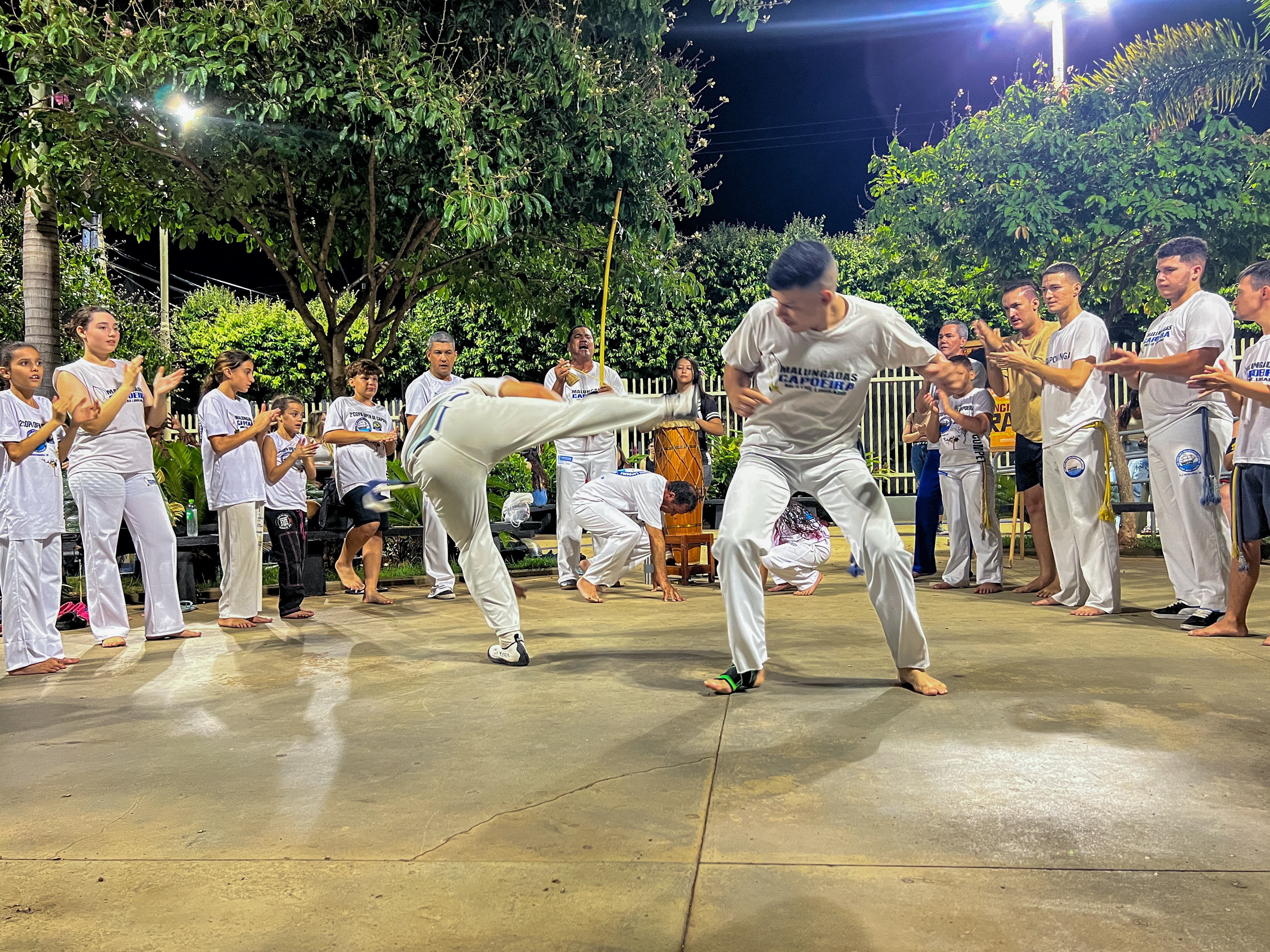 A atividade contou com a presença do Grupo Malungadas, vinculado à Secretaria Municipal de Esportes e Lazer, sob a coordenação do mestre Lousado, que conduziu uma vibrante roda de capoeira e um diálogo aberto sobre as origens, os significados e as transformações dessa expressão cultural ao longo do tempo. A capoeira, reconhecida como patrimônio imaterial da humanidade, foi apresentada não apenas como uma arte marcial, mas como símbolo de resistência, ancestralidade e identidade coletiva.