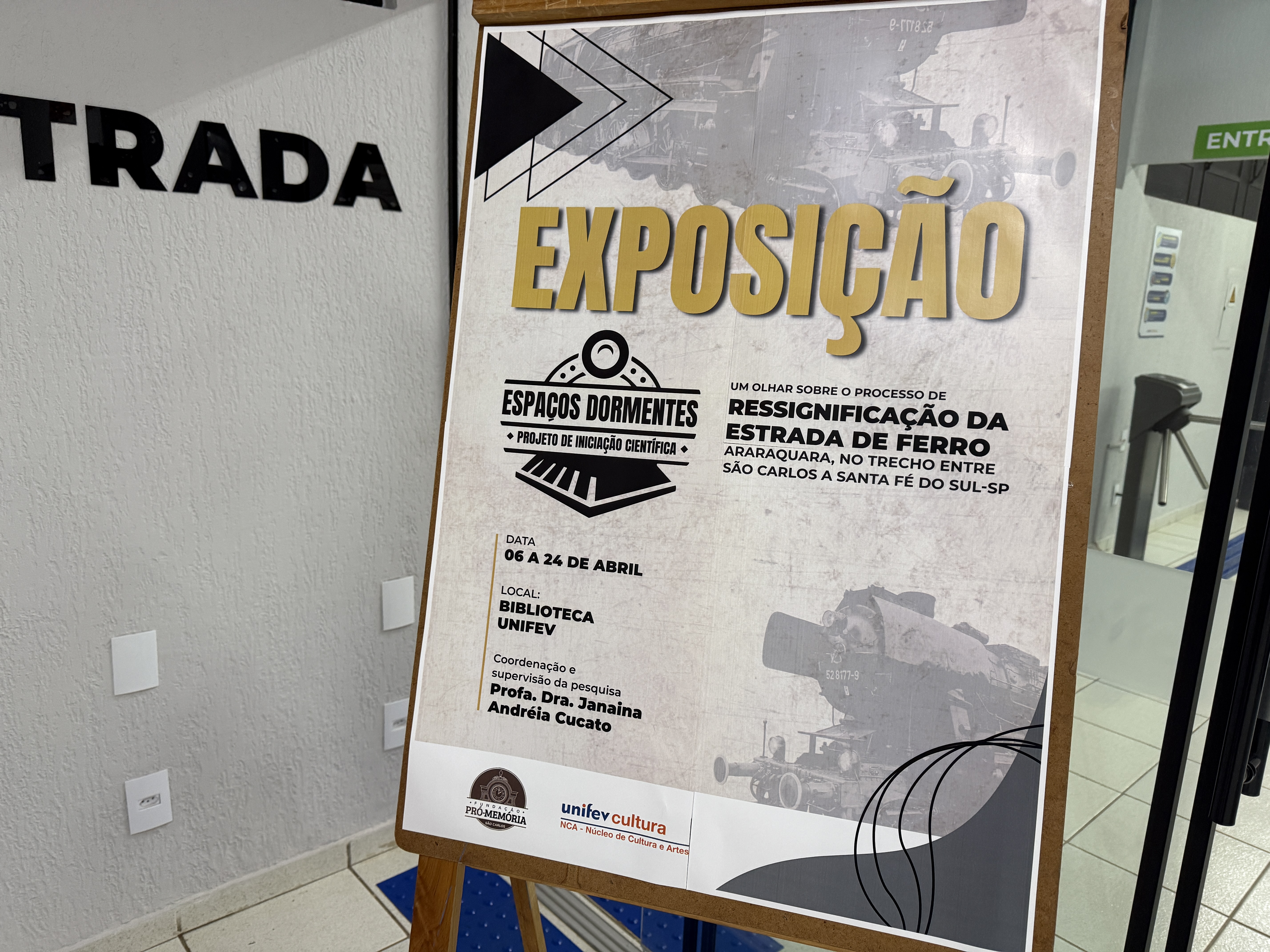A comunidade acadêmica e o público em geral têm a oportunidade de conferir, até o dia 24 de abril, a exposição “Espaços Dormentes – um olhar sobre o processo de ressignificação da Estrada de Ferro Araraquara”. Instalada no espaço de convivência da Biblioteca do Câmpus Centro Unifev, a mostra apresenta o resultado de uma extensa pesquisa idealizada pela Profa. Dra. Janaina Andréa Cucato e executada em conjunto com estudantes de Arquitetura e Urbanismo da Instituição, que investigaram o trecho ferroviário entre São Carlos e Santa Fé do Sul.