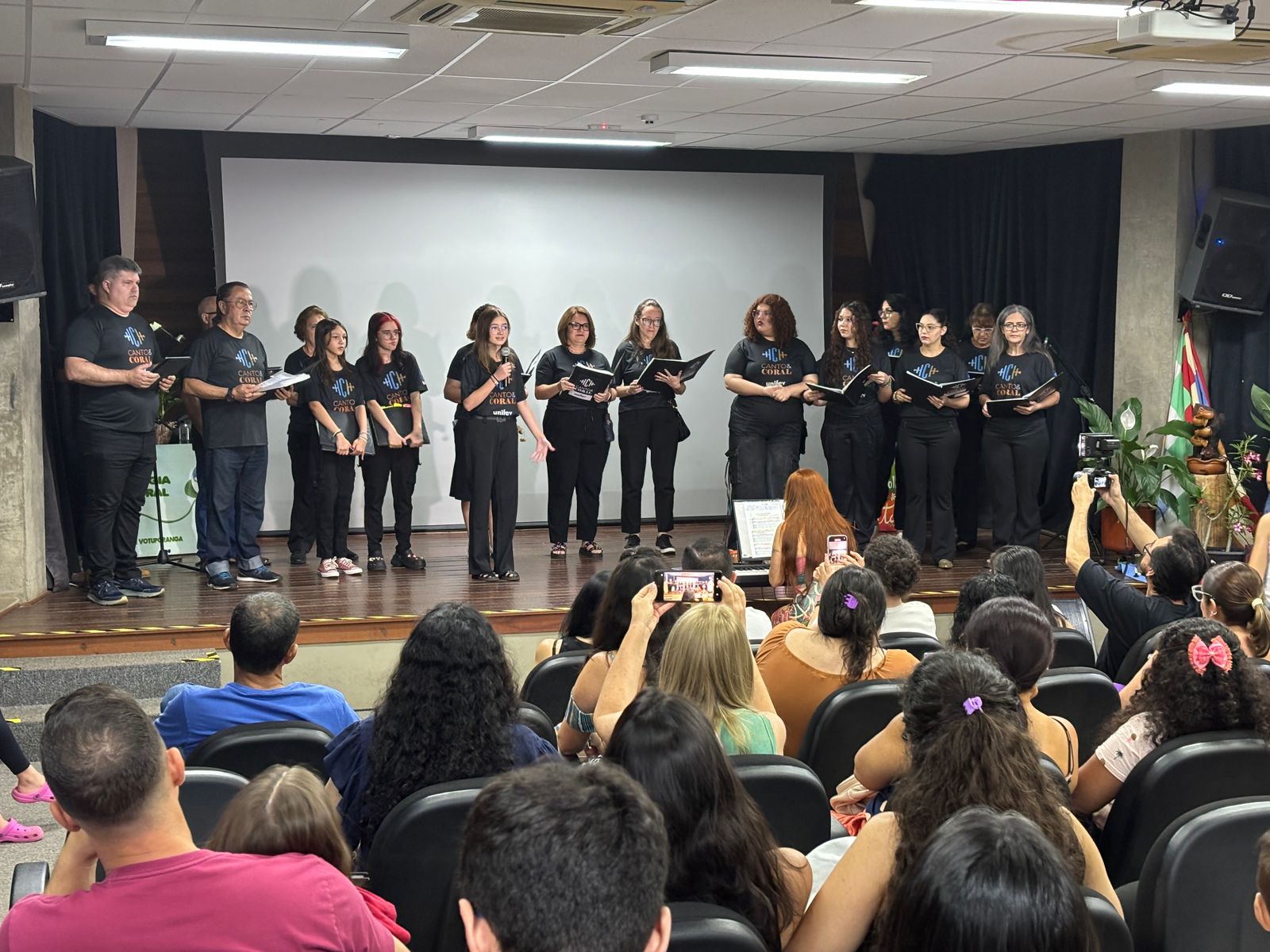 Com um repertório de músicas ligadas ao tema, o Coral encantou e emocionou o público, reforçando a mensagem de fé, esperança e cuidado com a vida e com a natureza.