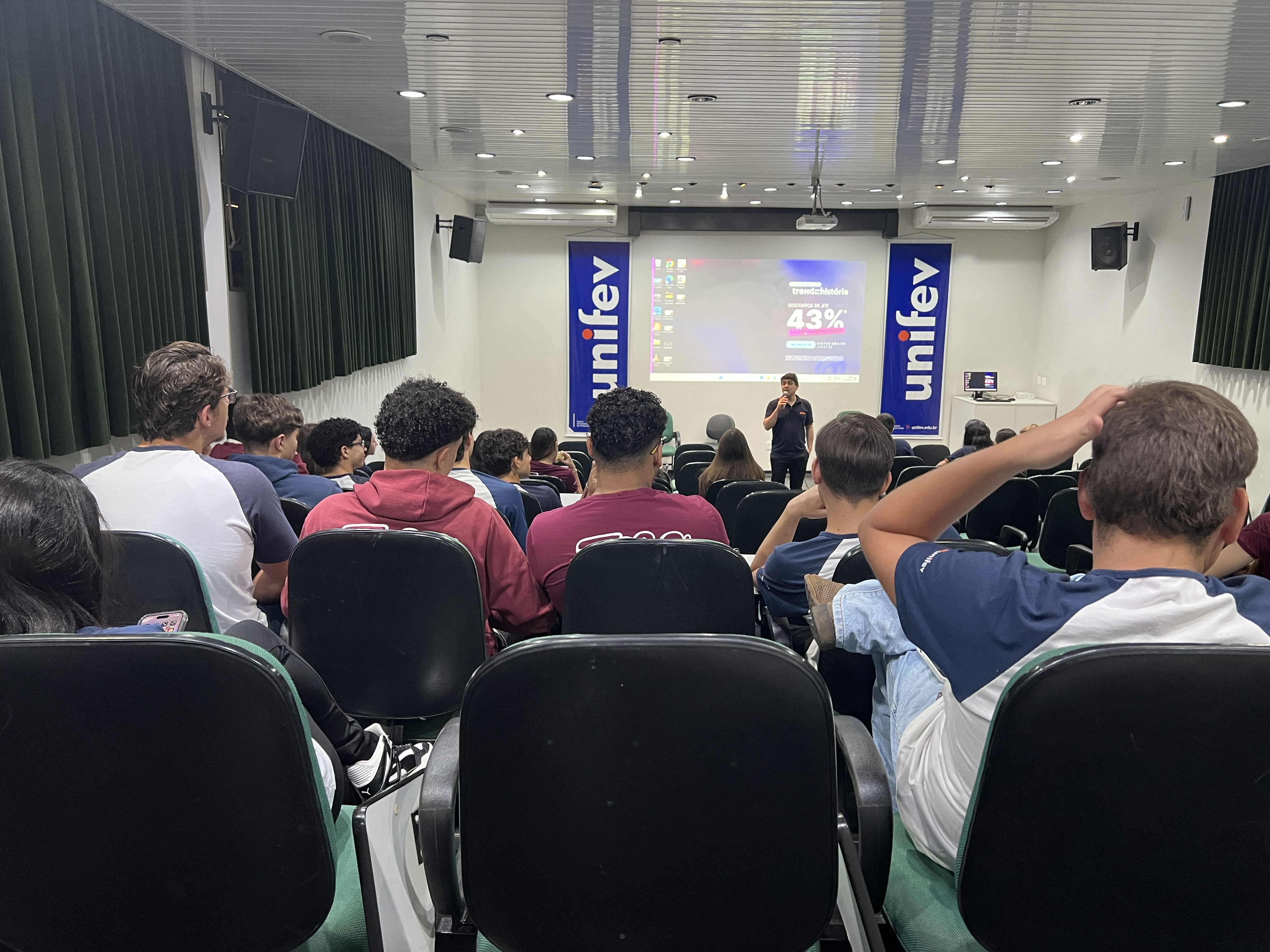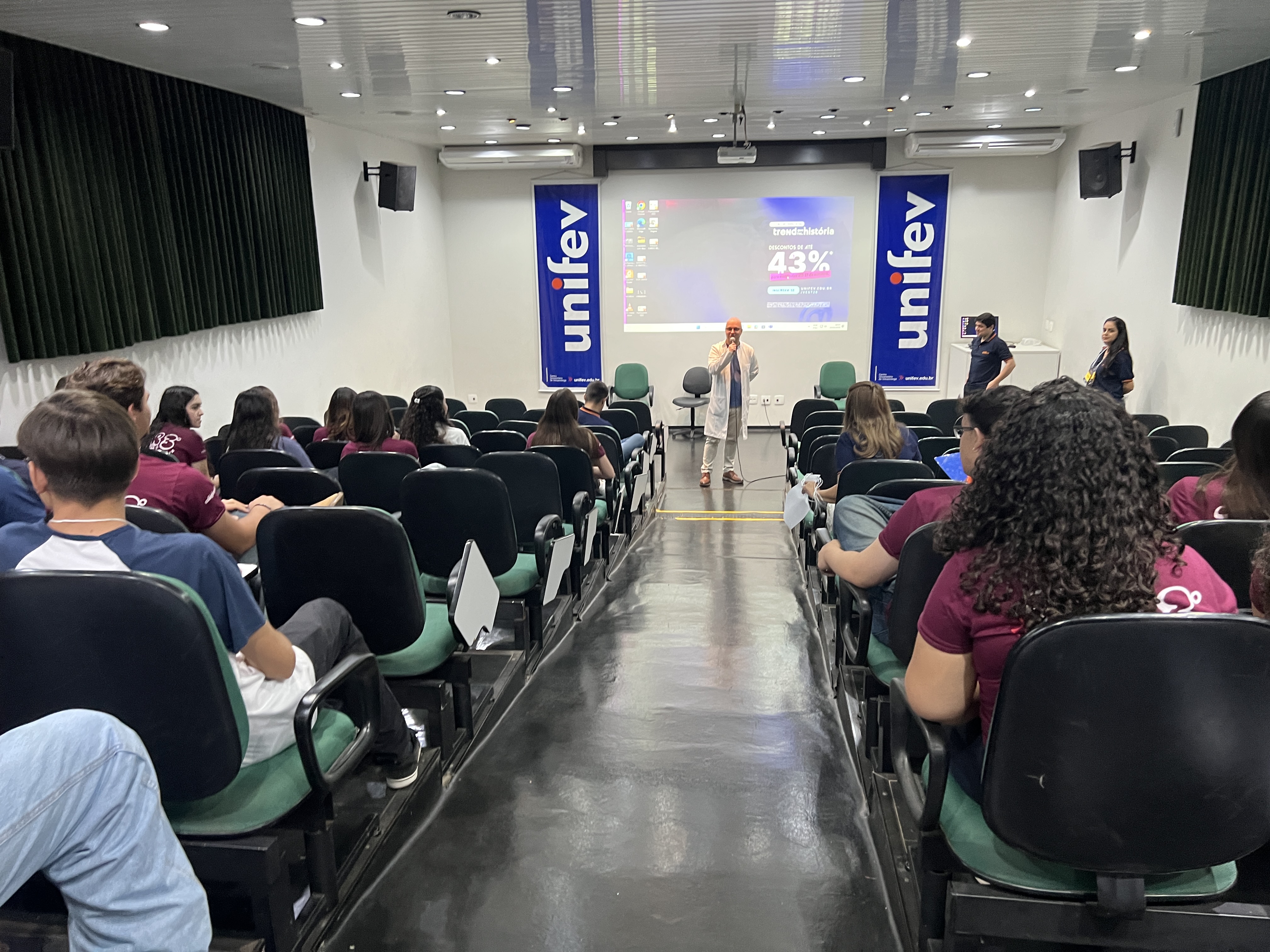 Na manhã de ontem (29/09), os alunos das terceiras séries do Ensino Médio do Colégio Unifev estiveram no Câmpus Centro da Instituição. Durante a visita, tiveram a oportunidade de explorar o local e conversar com os coordenadores e professores dos cursos de graduação, esclarecendo dúvidas sobre as particularidades de cada profissão.