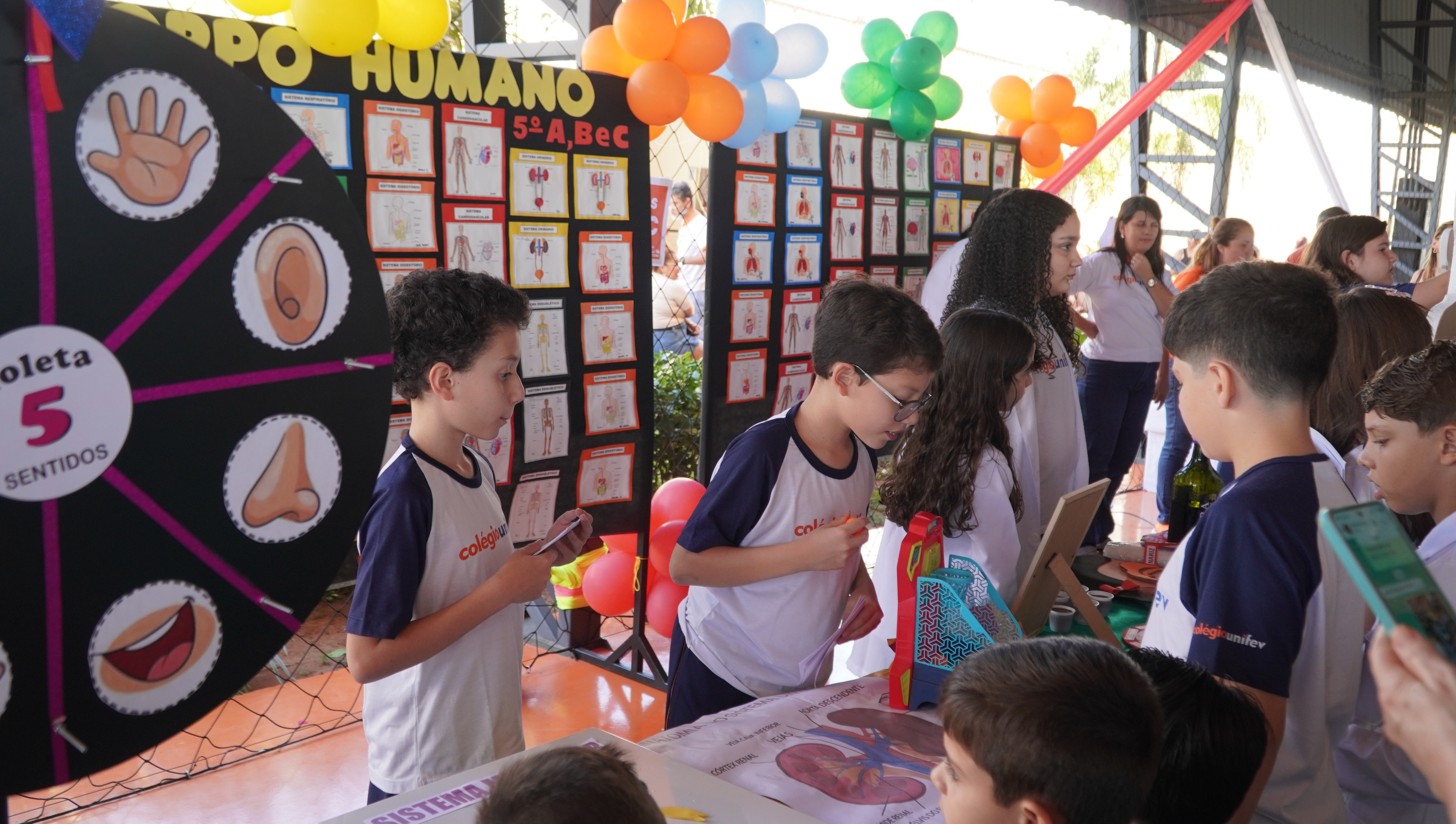A 5ª Feira das Ciências do Colégio Unifev foi um grande sucesso. Realizada no último sábado (27/9), das 9h às 11h30, encantou o público com experimentos preparados por alunos da Educação Infantil, Ensino Fundamental e Médio. Os trabalhos apresentados demonstraram criatividade, talento e aplicação prática dos conhecimentos adquiridos pelos estudantes em sala de aula.