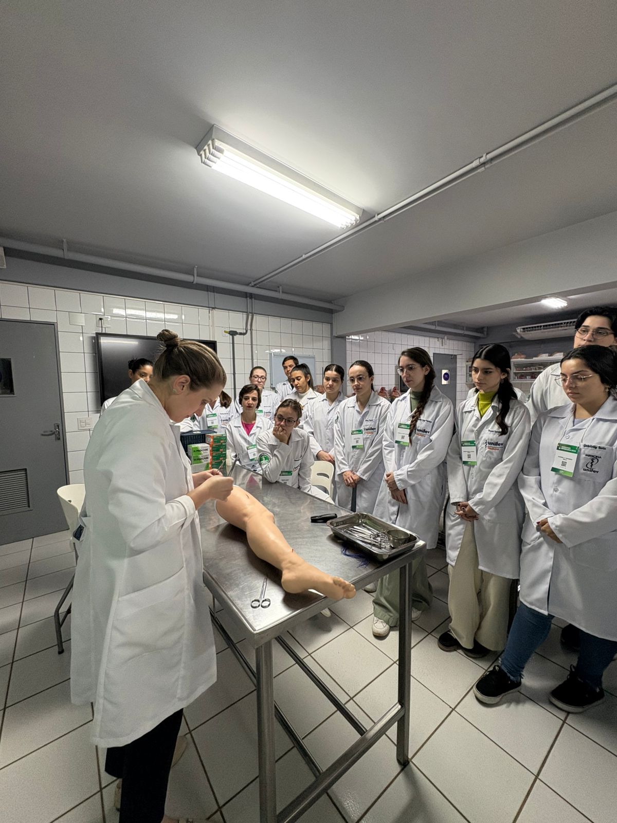 Atividade de extensão reuniu alunos de Medicina para aprimorar habilidades práticas em técnicas operatórias.