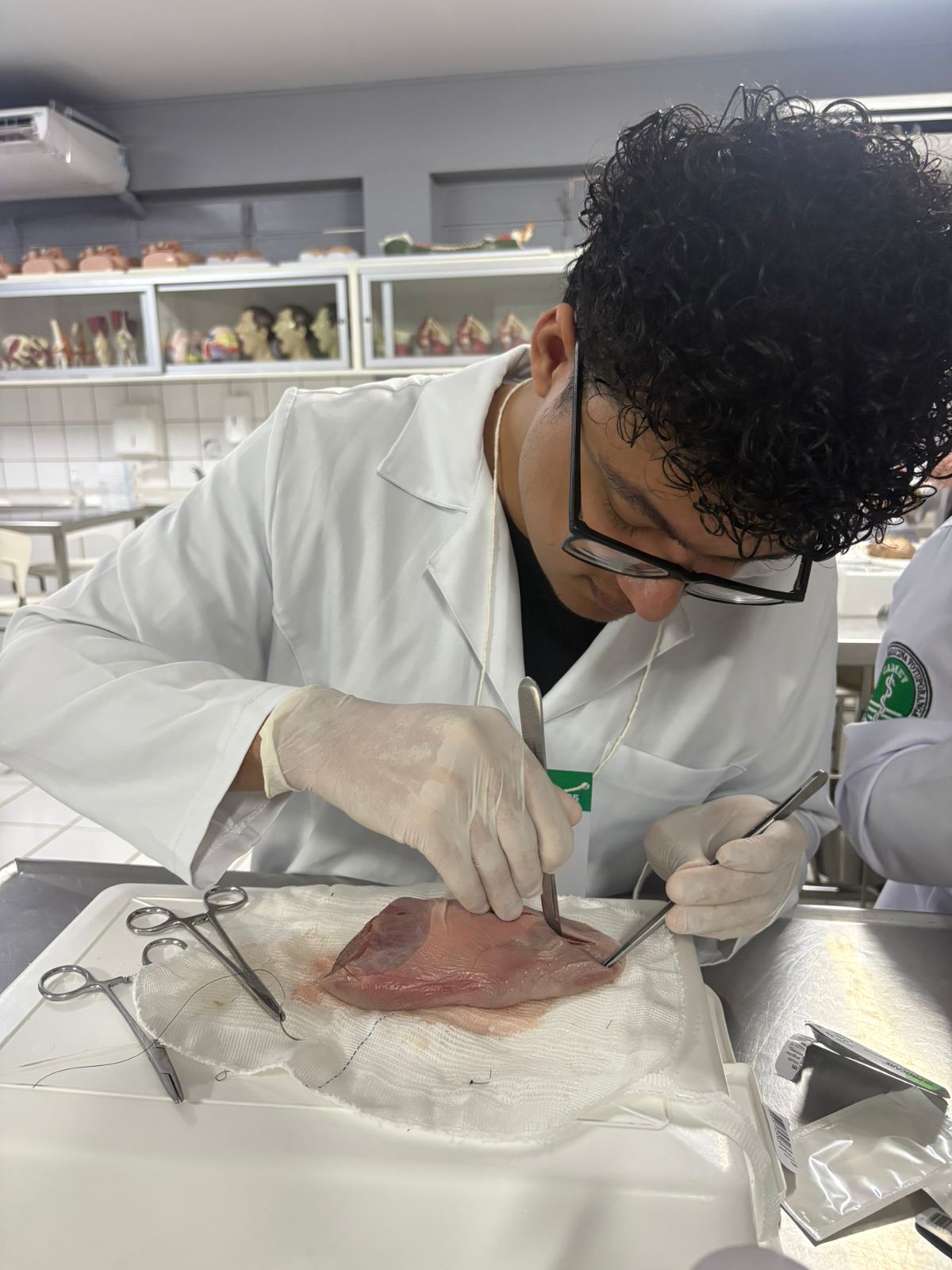 O encontro, realizado no Laboratório de Anatomia do câmpus Centro, teve como tema “Introdução às técnicas de sutura” e foi conduzido pela Profa. Ma. Juliana Corrêa Meziara de Castro. Durante o workshop, os participantes puderam revisar os conceitos fundamentais de técnicas operatórias, conhecer mais sobre o manuseio correto dos instrumentais cirúrgicos básicos e aplicar, na prática, diferentes técnicas de sutura em modelos simulados.
