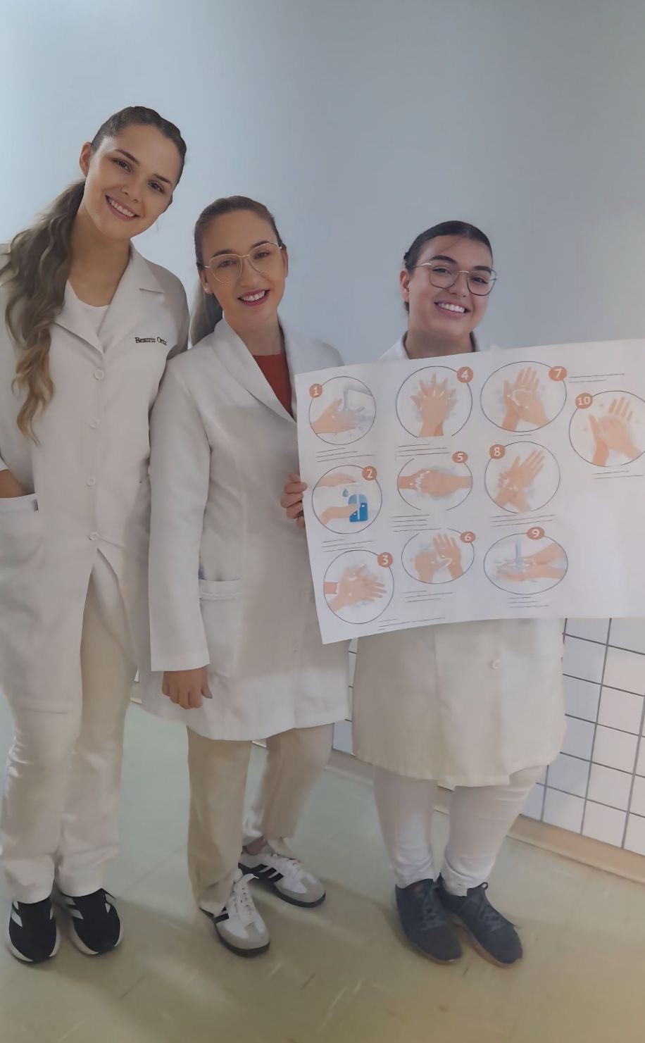 A atividade foi conduzida pelas discentes Gabriella Fernandes Pedroso de Lucca, Laisse dos Santos Martins, Beatriz Ortiz Krúg e Júlia Martins do Prado, que realizaram um diagnóstico situacional, elaboraram materiais educativos e promoveram uma oficina teórico-prática com pacientes e acompanhantes. Durante a ação, foram realizadas palestras interativas e demonstrações das técnicas corretas, seguindo os cinco momentos para a higiene das mãos, conforme orientações da Organização Mundial da Saúde (OMS).