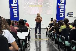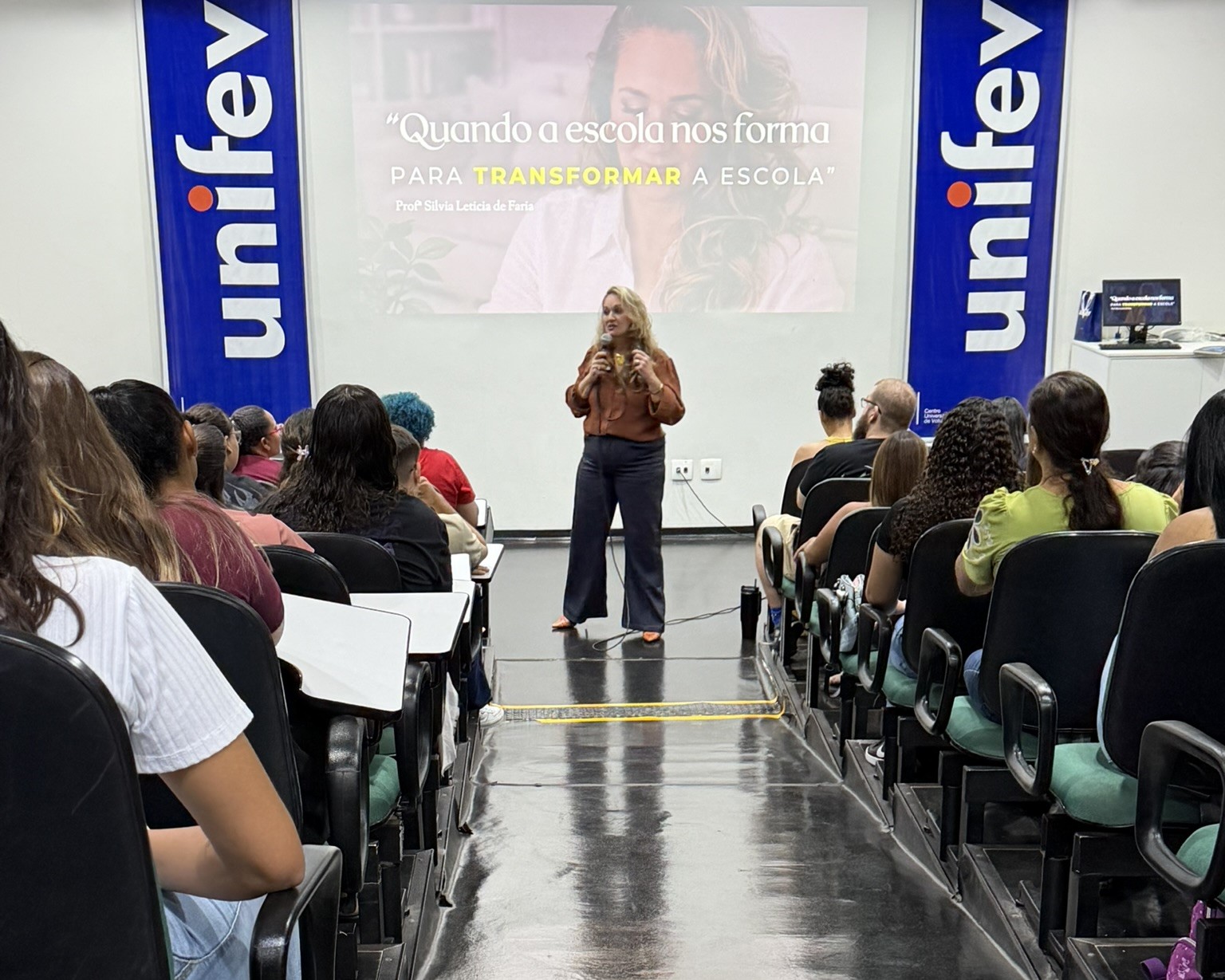 Realizada no auditório do Câmpus Centro, a palestra “Quando a escola nos forma para transformar a escola”, ministrada pela secretária municipal de Educação de Votuporanga, Silvia Letícia de Faria, que abordou a função formativa, cultural e humanizadora da escola na contemporaneidade.