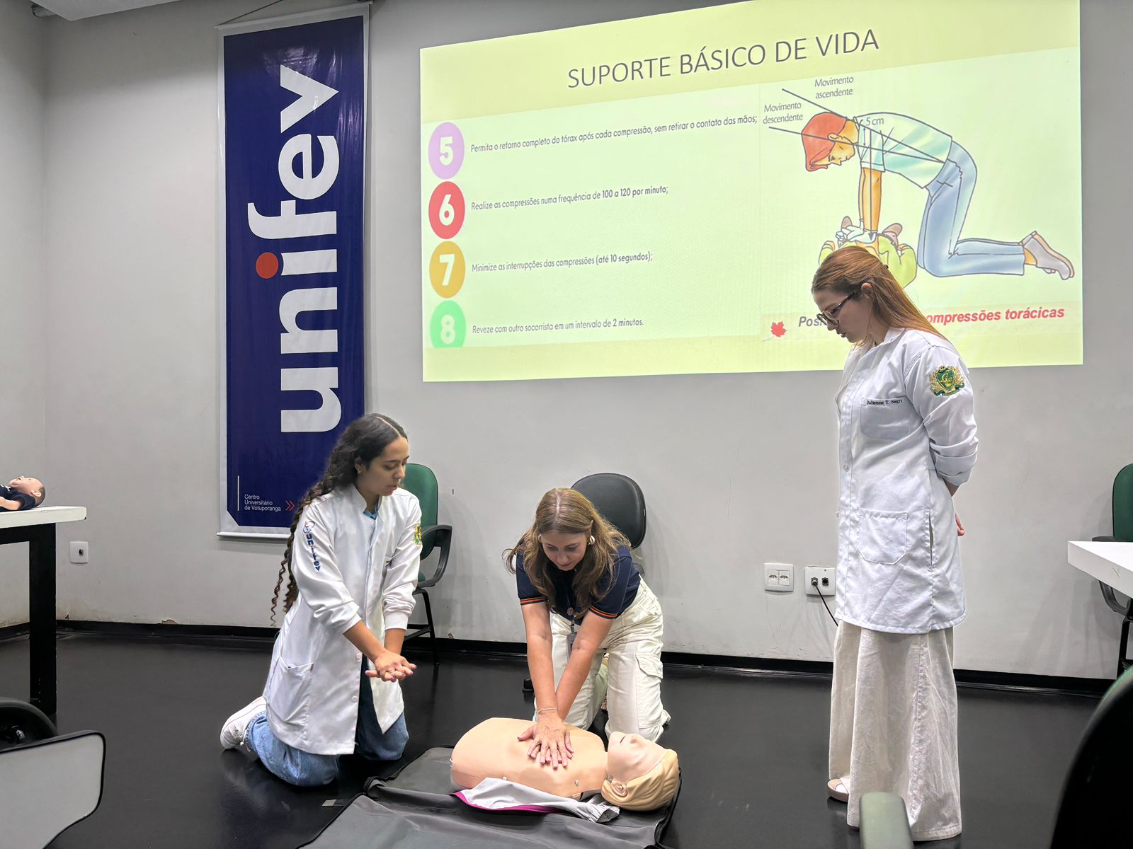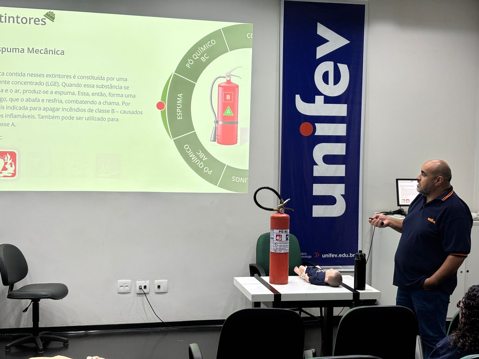 Os brigadistas da Unifev, dos câmpus Centro e Cidade Universitária, participaram do Treinamento para Brigada de Emergência 2025, promovido em parceria com a Comissão Interna de Prevenção de Acidentes (Cipa). A capacitação teve como objetivo reforçar os protocolos de segurança e preparar os brigadistas para atuarem de forma ágil e eficaz em situações de emergência.