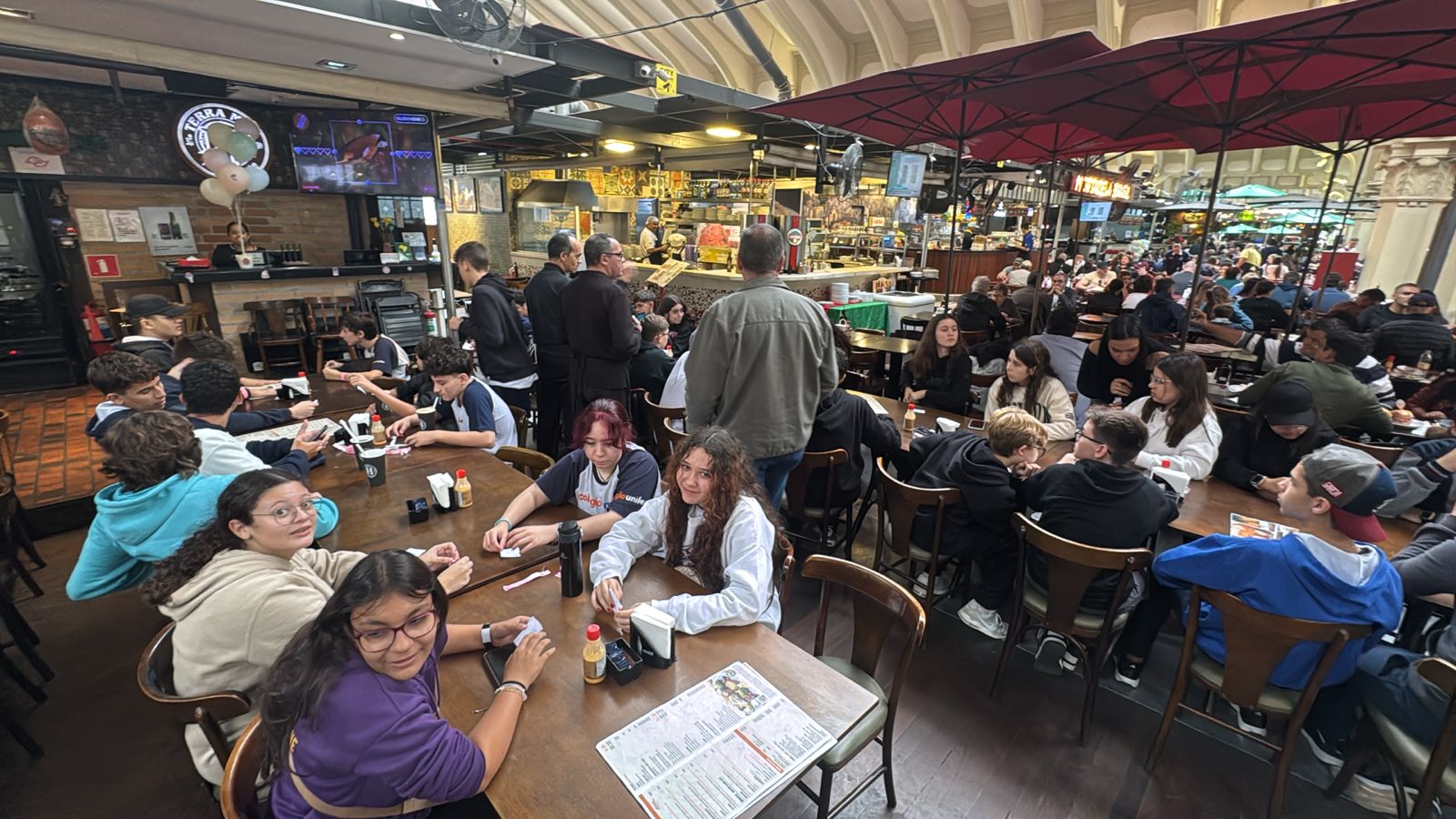 Em seguida, o grupo conheceu o Mercadão Municipal de São Paulo, um dos pontos turísticos mais tradicionais da capital. Além de almoçar no local, os alunos puderam reconhecer a importância histórica e cultural do espaço, experimentar pratos típicos da região e provar o famoso lanche de mortadela, símbolo da gastronomia paulistana. A viagem foi concluída com a visita ao Museu da Língua Portuguesa, onde os estudantes fizeram uma imersão na história, na diversidade e nas transformações do idioma falado no Brasil. De acordo com a professora Ma. Karina de Oliveira, a experiência foi enriquecedora.