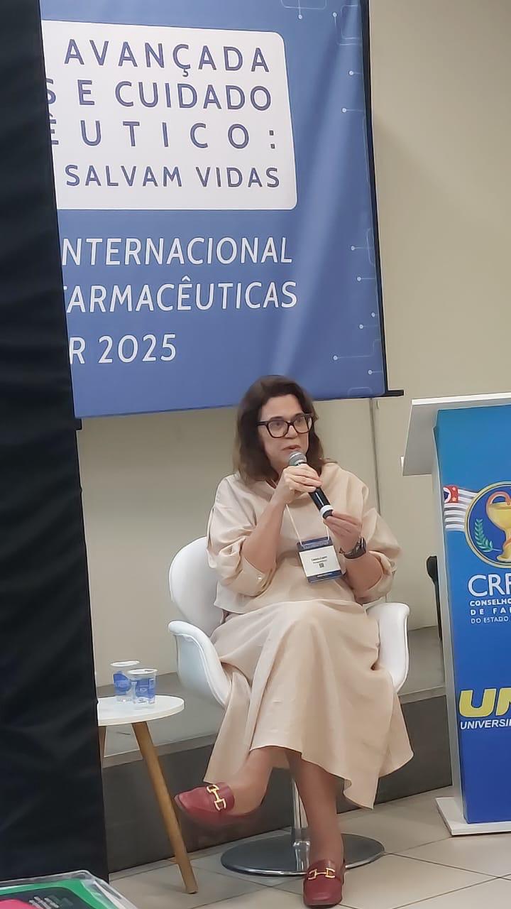 Valéria foi palestrante da mesa-redonda “A jornada do farmacêutico na assistência farmacêutica no SUS”, que contou com a presença de outros renomados profissionais do setor. O debate abordou os desafios e avanços da atuação do farmacêutico no Sistema Único de Saúde (SUS), ressaltando a importância da assistência farmacêutica na ampliação do acesso e na qualidade do cuidado em saúde.
