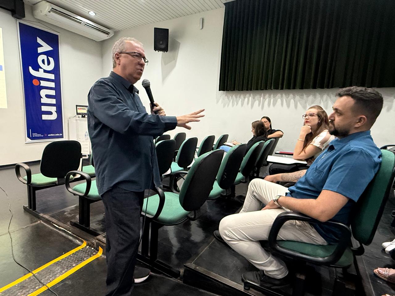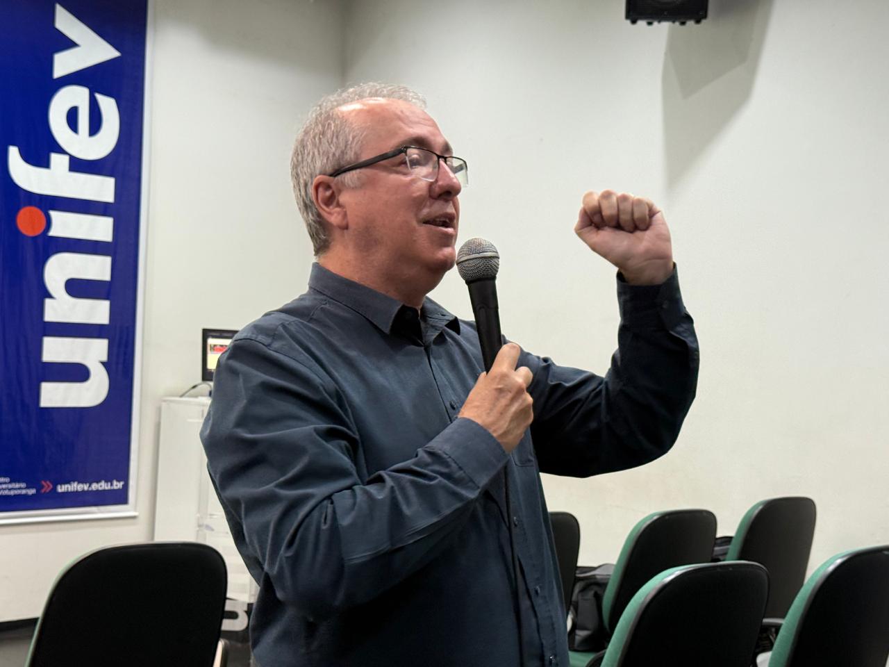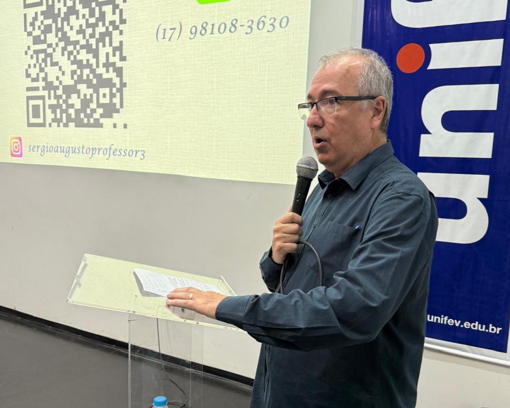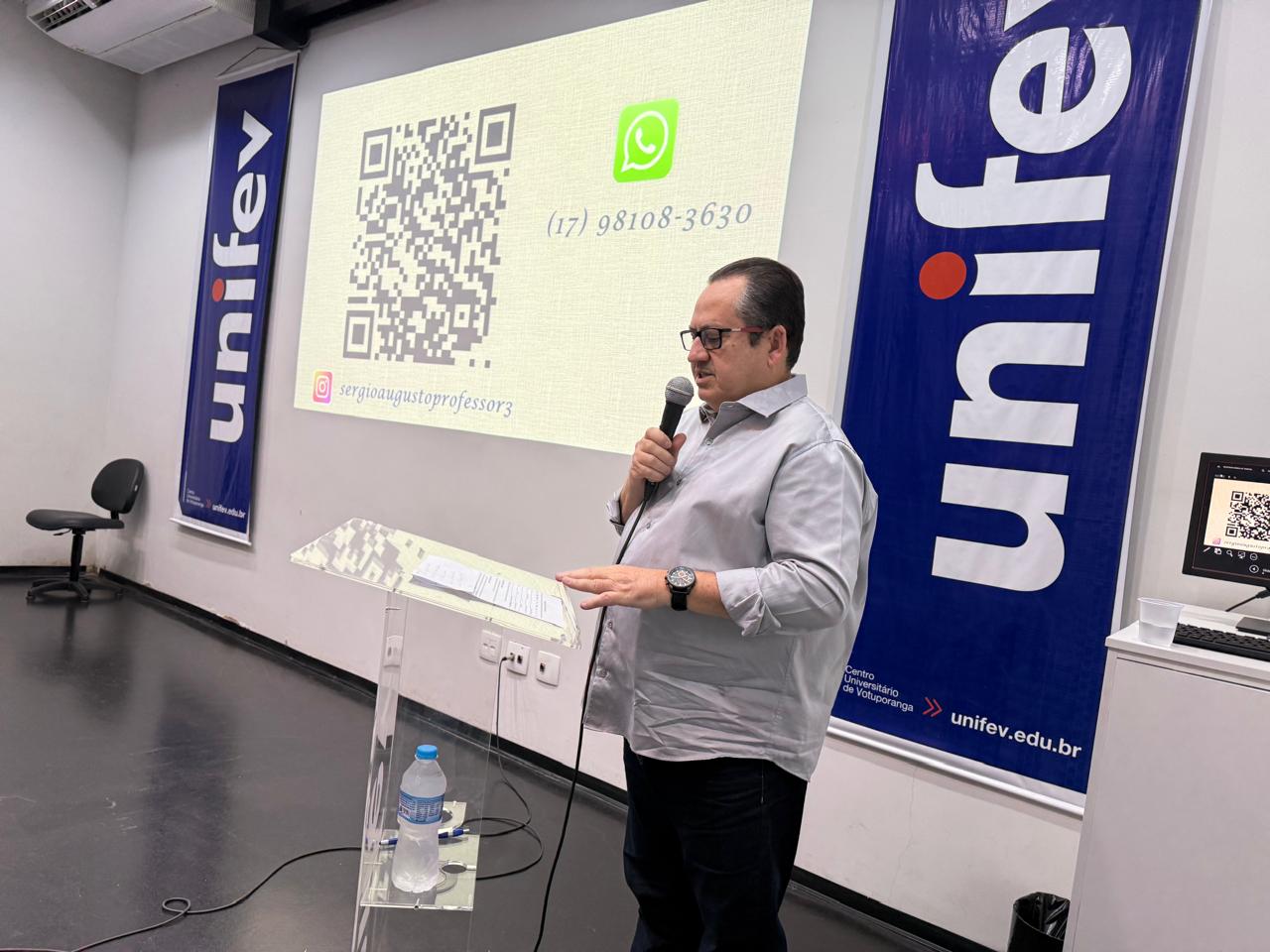 Os cursos de Administração e Ciências Contábeis da Unifev realizaram na noite da última quarta-feira (22/10), no auditório do câmpus Centro, a palestra "Reforma Tributária", em parceria com a Associação dos Contabilistas da Região de Votuporanga. O evento, gratuito e aberto à comunidade, recebeu o Prof. Me. Sérgio Augusto Nogueira, auditor fiscal da Secretaria da Fazenda do Estado de São Paulo desde 2006, para relatar a revisão do sistema de impostos e suas implicações.