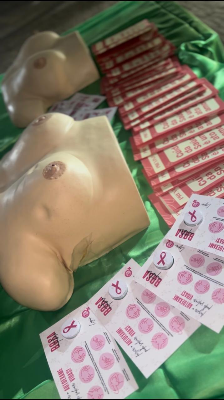 A iniciativa contou com a participação de docentes e alunos da Liga de Ginecologia e Obstetrícia (LAGOV), que orientaram a população sobre a importância do autocuidado, do autoexame das mamas e do diagnóstico precoce da doença. Durante a atividade, foram distribuídos panfletos informativos, brindes e materiais educativos, além da demonstração prática da palpação das mamas em modelos anatômicos.
