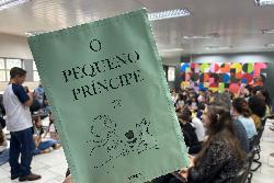 Em seguida, os alunos apresentaram, dentro da Biblioteca, os resultados dos estudos realizados sobre a obra “O Pequeno Príncipe”, de Antoine de Saint-Exupér, compartilhando reflexões e produções inspiradas na leitura.