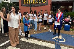 Abertura do evento contou com uma apresentação conduzida pela professora Thais Ghidoni, com a interpretação da canção "Somewhere Only We Know"