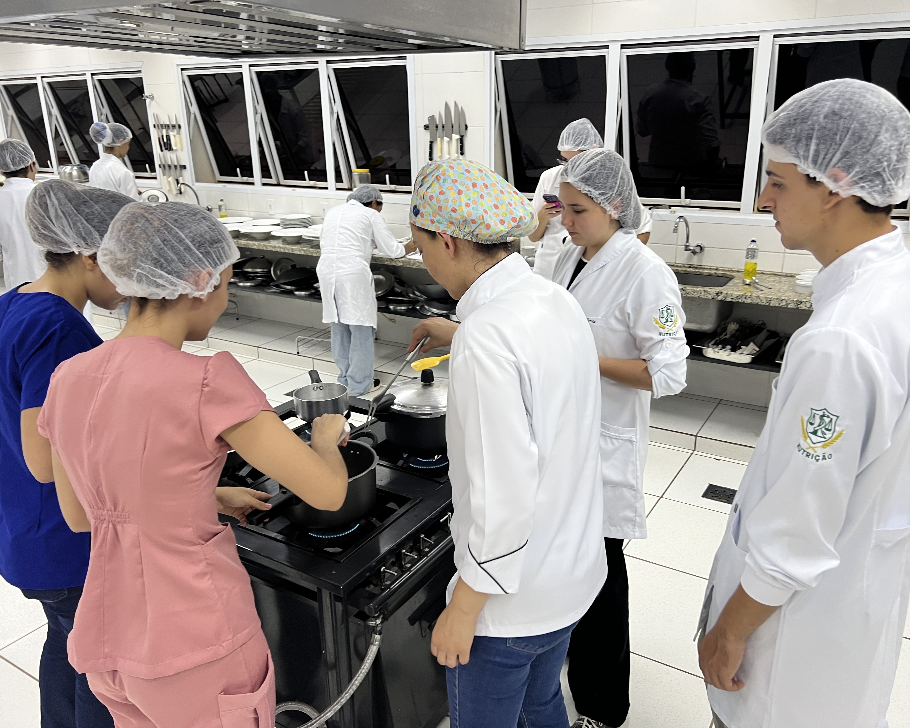 Uma experiência digna de reality culinário, mas com o foco voltado para a técnica de preparo de alimentos e não apenas o sabor. Assim foi a aula prática do curso de Nutrição da Unifev, realizada na noite da última quinta-feira (30/10), na disciplina Técnica Dietética, sob a supervisão da Profa. Ma. Vanessa de Castro.