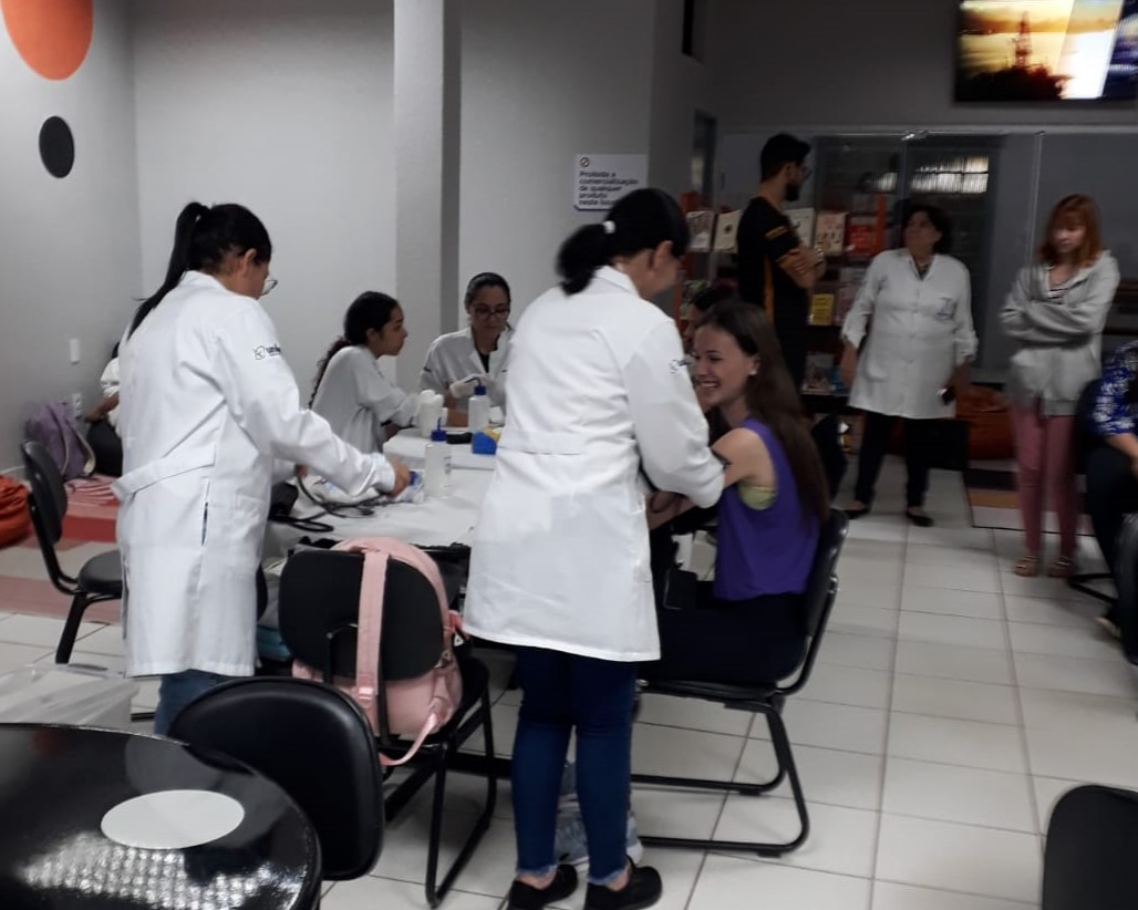 Na oportunidade, os alunos de Enfermagem ofereceram gratuitamente serviços de aferição da pressão arterial e teste de glicemia capilar (dextro). Eles também forneceram orientações sobre a prevenção de hipertensão e diabetes. A iniciativa será realizada novamente na próxima segunda-feira, dia 10 de novembro.