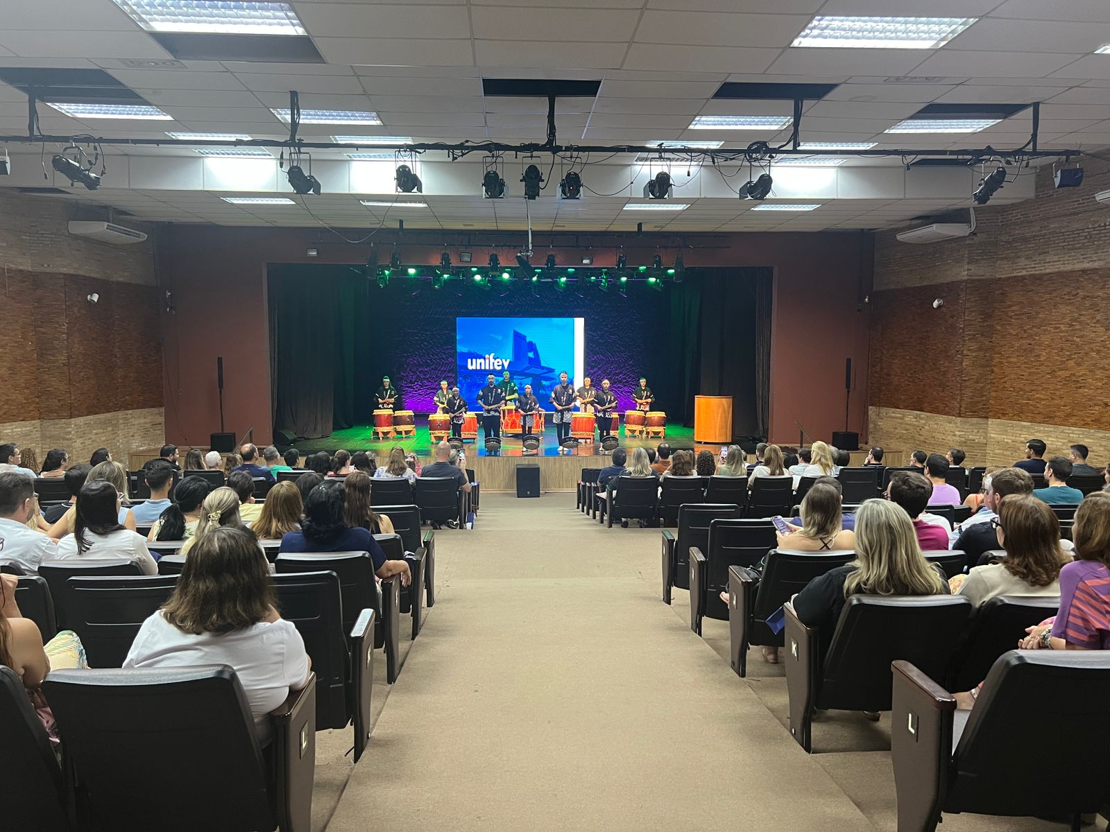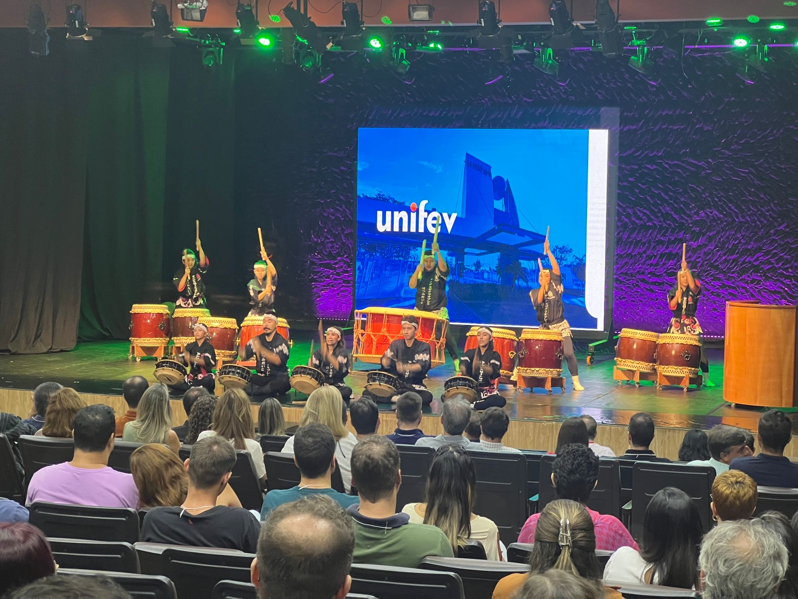 A noite contou com a apresentação do Grupo Hatsumi Taiko, expressão da arte milenar japonesa de tocar tambores, simbolizando força, união, disciplina, respeito e trabalho coletivo. Para o integrante do grupo, Carlos Fukunaga, a apresentação dialoga diretamente com o ambiente educacional. “O taiko representa o trabalho em grupo, o sincronismo e o sentimento coletivo, valores que também estão muito presentes na educação e na formação de pessoas”, explicou.