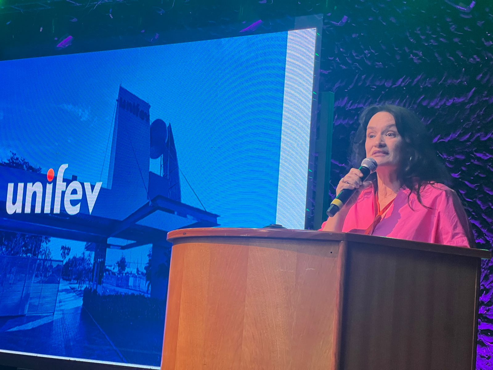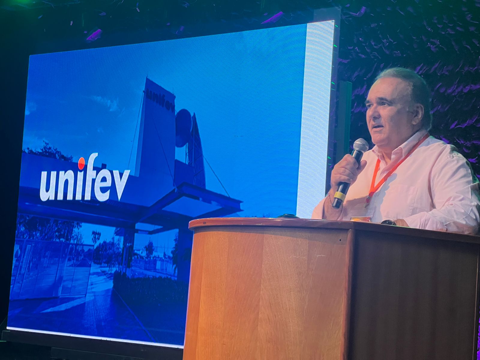 Outro momento especial foi a apresentação da logomarca comemorativa dos 60 anos da Unifev, celebrando uma trajetória marcada por conquistas, crescimento e compromisso com o ensino superior de qualidade. Na ocasião, o reitor ressaltou a relevância da data.