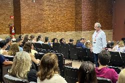 Encerrando a programação do primeiro dia, os docentes acompanharam a palestra do Dr. José Pedro Barbosa Lins, com o tema “Felicidade Interna Bruta na prática: como educadores inspiradores criam o futuro da Unifev”, que trouxe reflexões sobre propósito, bem-estar e o papel transformador do educador.