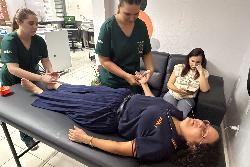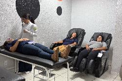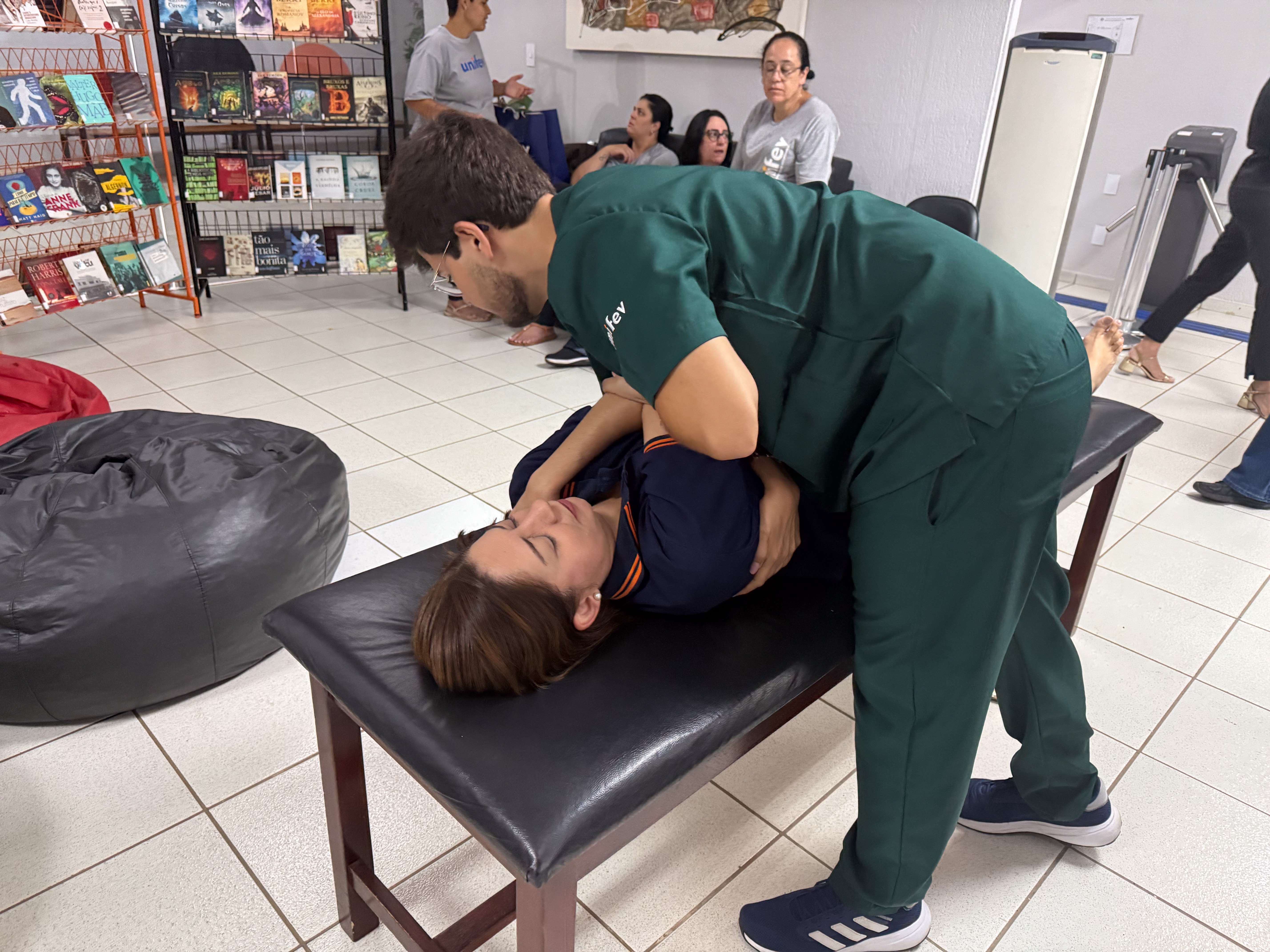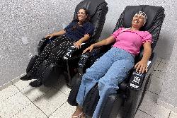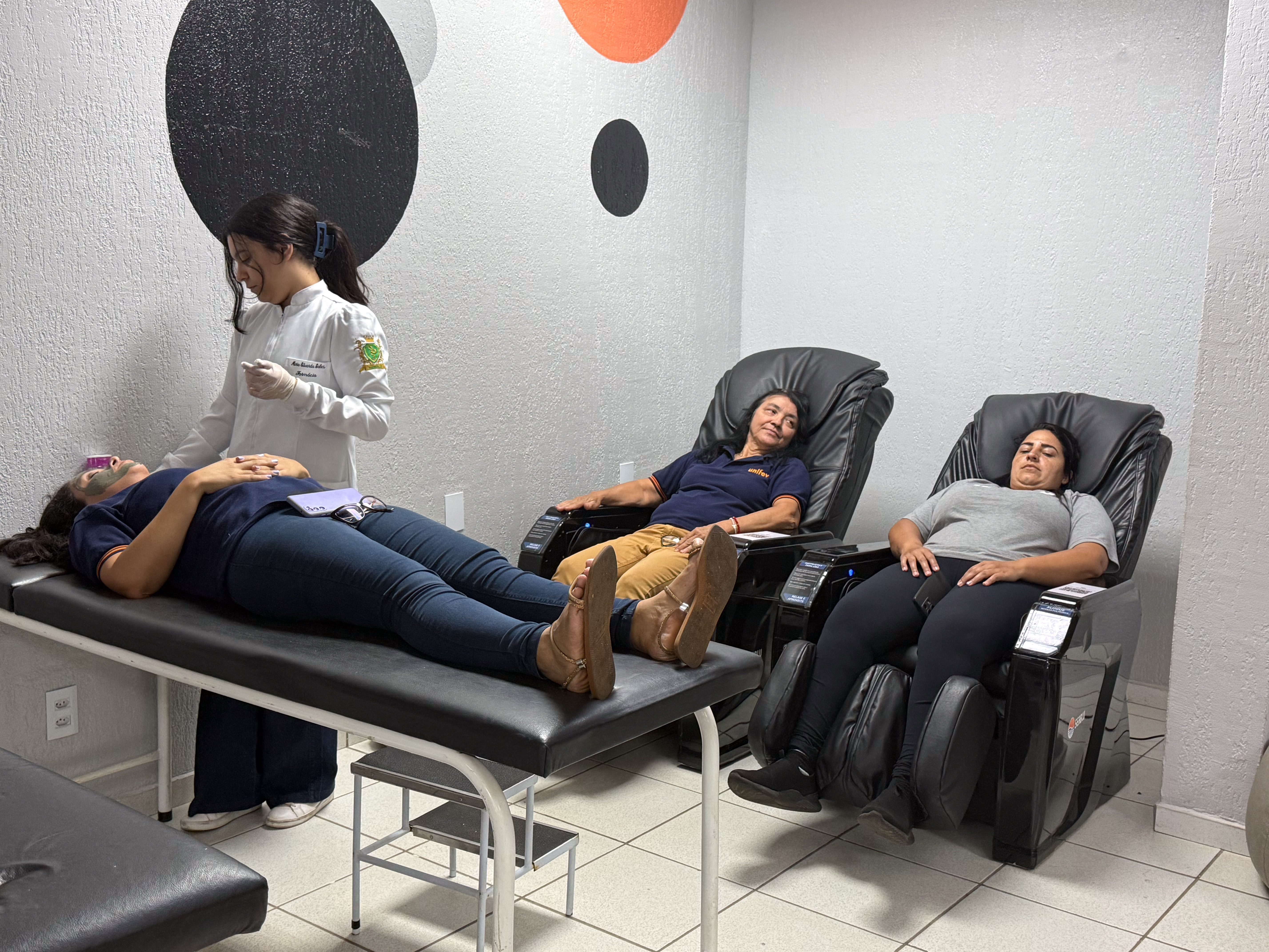 Após o debate, as colaboradoras se reuniram no espaço de convivência da Biblioteca para um coffee especial. Lá, foi montada uma estrutura que ofereceu serviços de ventosaterapia, massagens, liberação miofascial, quiropraxia e argiloterapia, além de poltronas massageadoras.
