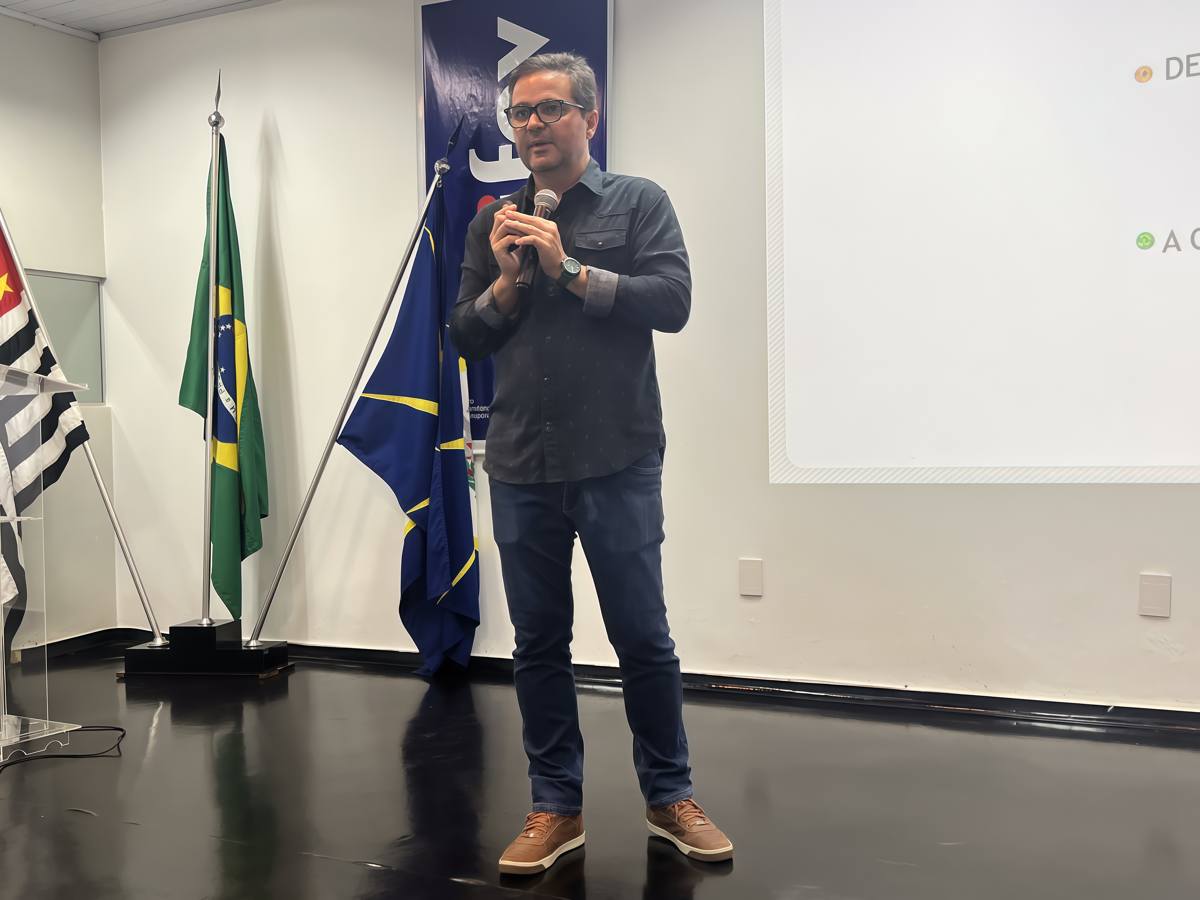 Em seguida, os presentes acompanharam a palestra do empresário e escritor Leonardo de Matos, autor do livro “Quebrei – Guia Politicamente Incorreto do Empreendedorismo”, criador do adubo orgânico “Bosta em Lata”, vencedor do prêmio "O Melhor Vendedor do Brasil" e participante da primeira temporada do programa Shark Tank Brasil, que abordou o tema “Empreendedorismo na era da Inteligência Artificial: como inovar, vender e comunicar”.
