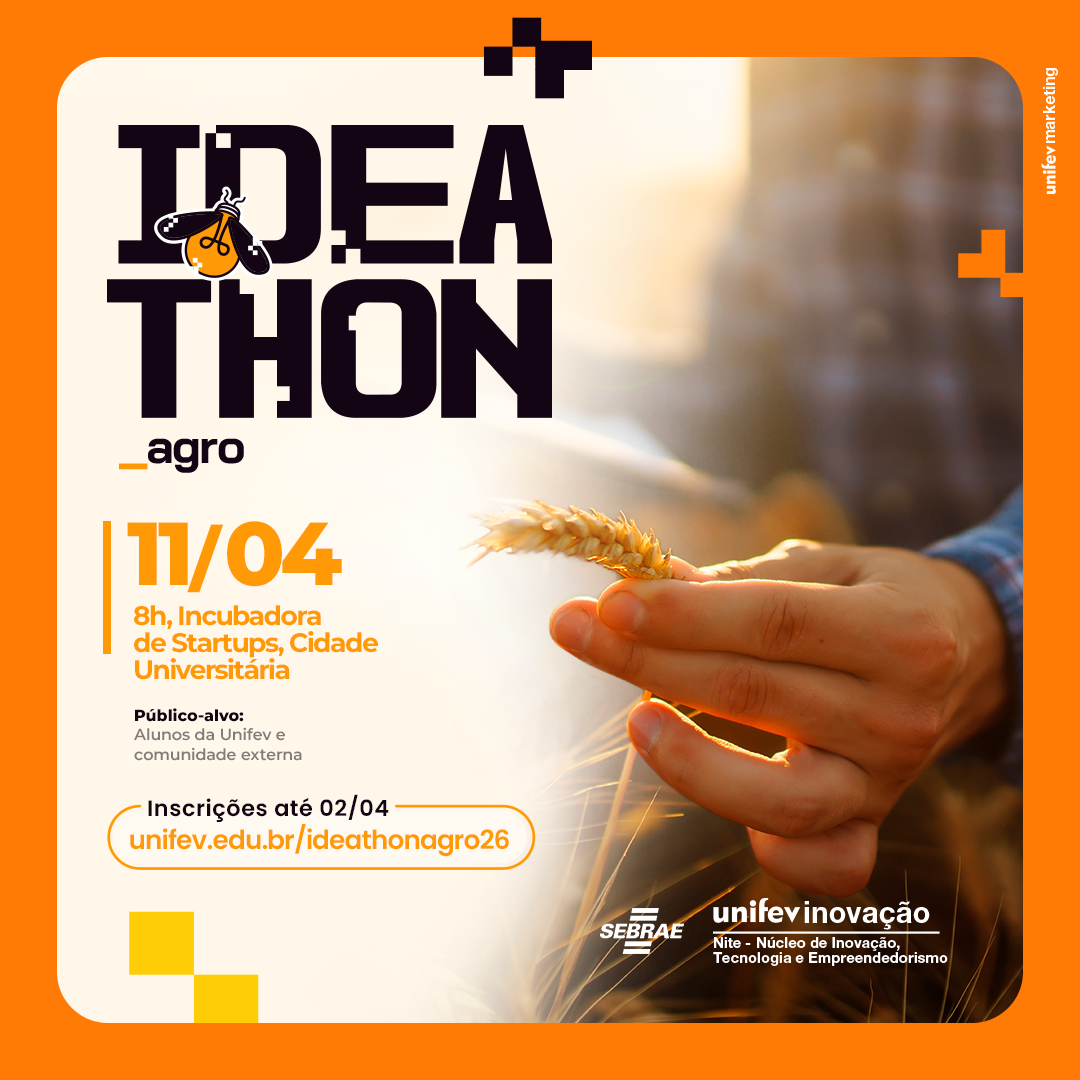 A Unifev abriu inscrições para o Ideathon Agro, que acontecerá em 11 de abril, das 8h às 13h, na Incubadora de Startups da Cidade Universitária. O evento tem como objetivo promover inovação e empreendedorismo, com ênfase na identificação e validação de desafios nos setores agrícola e do agronegócio.