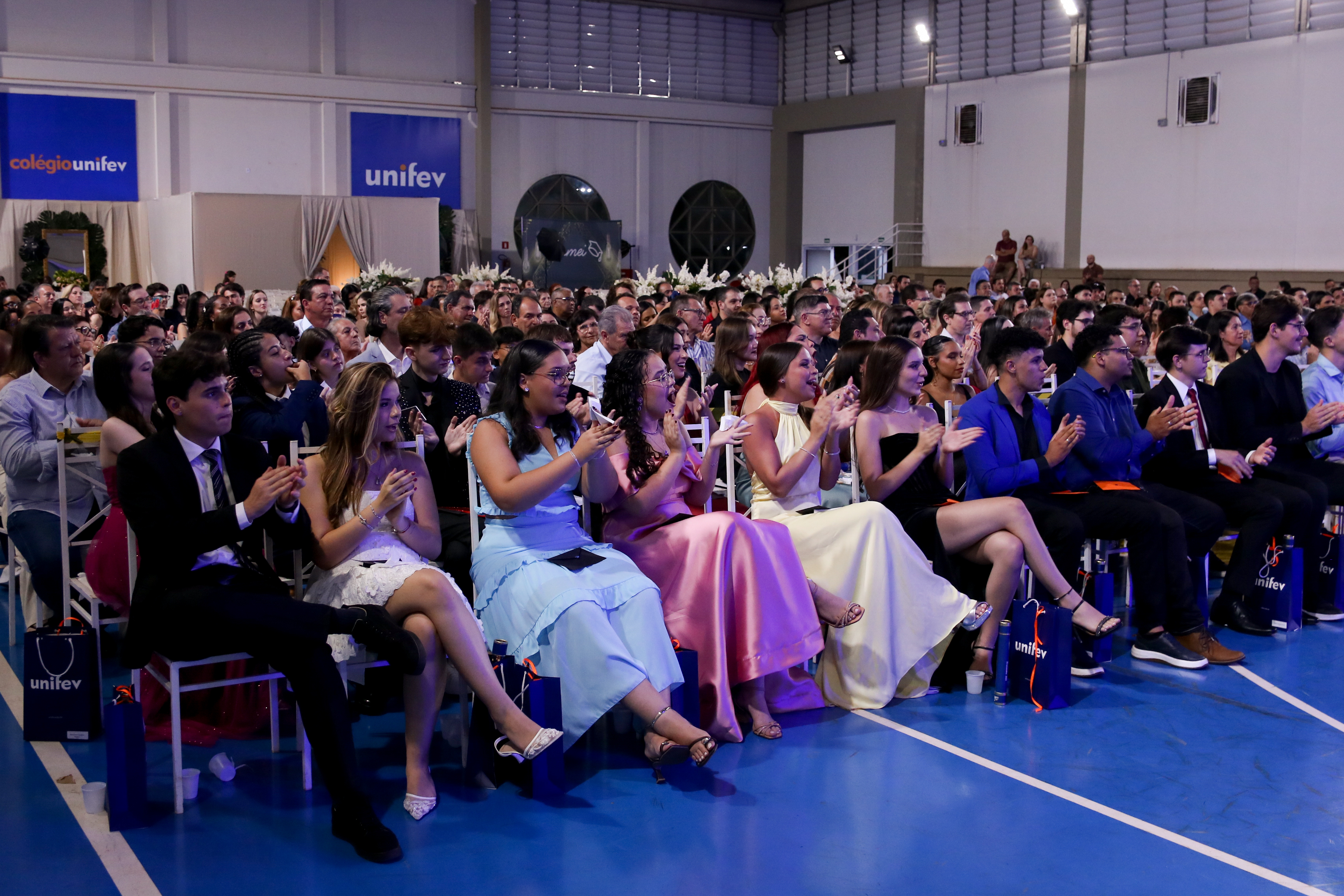 Estudantes das terceiras séries A e B participaram da solenidade, que reuniu pais, familiares e a comunidade escolar no Complexo Poliesportivo da Cidade Universitária